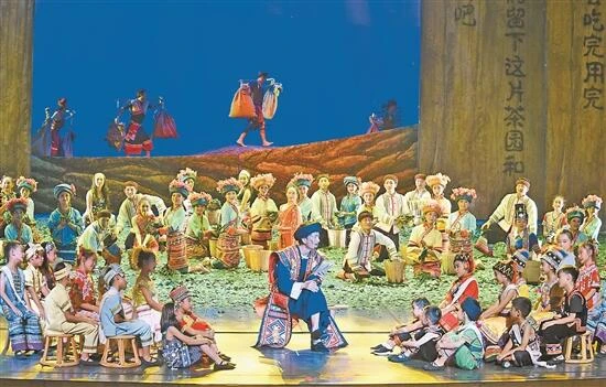 由普洱市民族歌舞團(tuán)有限責(zé)任公司創(chuàng)排的舞劇《臘·景邁》以古茶林為背景,以古茶林的守護(hù)者——景邁山的世居民族之一的布朗族茶生活為題材,藝術(shù)地表現(xiàn)了伴茶而生的景邁山世居民族的精神信仰及文化創(chuàng)造。該劇時(shí)長(zhǎng)90分鐘,演職人員近100人,全劇以7個(gè)章節(jié)構(gòu)成。該劇以改革開放初期就深入景邁山進(jìn)行田野調(diào)查的民族學(xué)女專家40年后重返景邁山的事件為引,講述時(shí)代變遷中新老兩代景邁人情感交織的故事,將景邁山居民對(duì)景邁古茶樹的敬仰、守護(hù),對(duì)古茶餅的傳承,對(duì)家園的熱愛傳遞給觀眾,讓觀眾深入了解普洱景邁,感受其所孕育的民族文化與智慧,進(jìn)一步喚起人們對(duì)非物質(zhì)文化遺產(chǎn)及自然環(huán)境的保護(hù)意識(shí)。(記者 侯婷婷 通訊員 李嘉嫻)