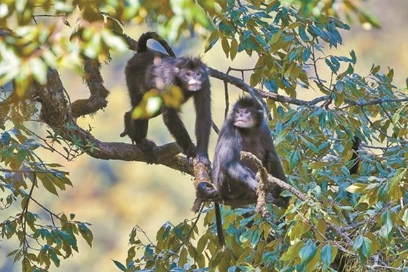 怒江金絲猴,世界現存種群數量約400至500只。在國內僅分布于高黎貢山國家級自然保護區瀘水段,現已知有2個猴群。