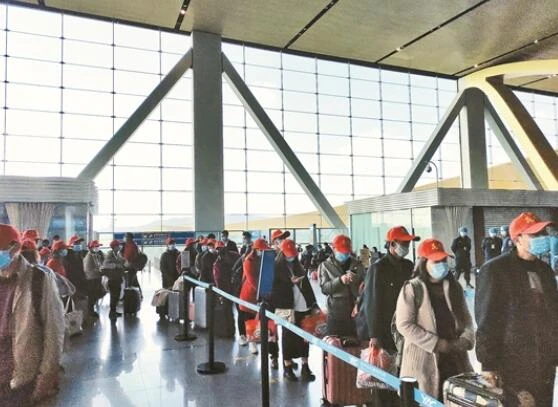 2月19日,昆明市采取統一組織、集中輸送的方式,為全市93名首批赴福建務工人員提供免費包機直達服務,讓他們安全有序返崗復工。