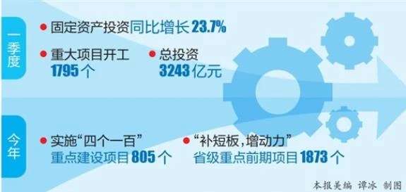 記者日前從省發展改革委新聞發布會上獲悉,今年以來,我省提早謀劃、高位推動固定資產投資工作,一季度全省固定資產投資同比增長23.7%,重點行業和地區投資持續發力,重大項目建設步伐加快。