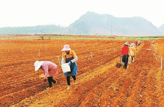 連日來,在丘北縣12個鄉鎮的田間地頭,隨處可見群眾拉運化肥、育苗、蓋膜、翻犁田地、移栽旱地辣椒、整理烤煙大田的身影,縣里組織100余名農技人員深入各鄉鎮指導春耕春管工作,一派春潮涌動的繁忙景象。圖為該縣天星鄉群眾在田間勞作。(通訊員 張德華 陳林耕 攝)
