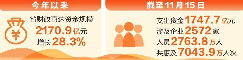 省財(cái)政廳建立健全常態(tài)化財(cái)政資金直達(dá)機(jī)制,及時(shí)做好直達(dá)資金分配、下達(dá)工作,加強(qiáng)資金日常監(jiān)管,督促單位加快預(yù)算執(zhí)行進(jìn)度,確保直達(dá)資金規(guī)范高效使用。嚴(yán)格按時(shí)限要求分解細(xì)化資金分配方案,直達(dá)資金分配更加及時(shí),省對州(市)、縣(市、區(qū))轉(zhuǎn)移支付10月底前全部完成分配下達(dá)。截至11月15日,全省直達(dá)資金支出1747.7億元,涉及企業(yè)2572家、人員2763.8萬人,共惠及7043.9萬人次。