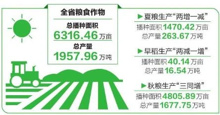 夏糧生產“兩增一減”。今年全省夏糧播種面積1470.42萬畝,比2021年增加13.86萬畝,增長0.95%;夏糧總產量263.67萬噸,比2021年增加1.86萬噸,增長0.71%;夏糧綜合單產179.32公斤,比2021年略減0.24%。