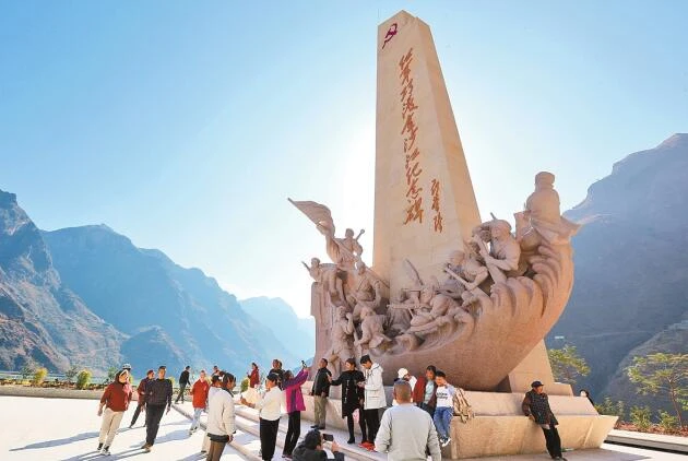 祿勸皎平渡中央紅軍巧渡金沙江革命遺址,游客流連。記者 黃興能 攝