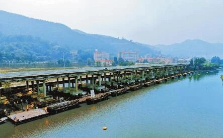 據介紹,浮橋整體采用鋼結構縱向分置式排列,由雙體舟、四體舟、岸邊平臺、接岸升降裝置、錨定系統和輔助器材等組成。浮橋在水中長260米,共13跨,跨距20米,通行道寬4.5米,使用年限20年,設有浮橋段、觀景平臺段和接岸平臺段。在設計中,浮橋將昆明“高峣古渡”的文化特色融入設計元素之中,體現“百舸爭流、千帆競發”的意境,打造漁家碼頭場景,展現滇池漁文化。下一步,浮橋還將開展桅桿風帆、景觀照明、防護欄桿、通行地板等附屬設施安裝,實現一次成型、一次成優。(記者 龍舟)