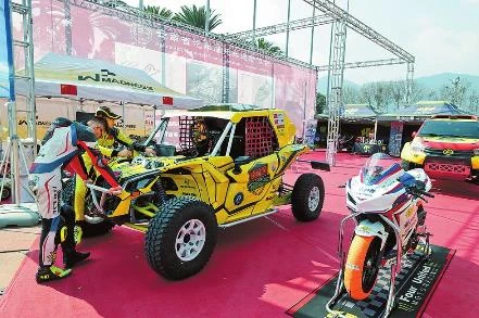 云南省體育產業大會上展出的越野車和摩托車。記者 周燦 攝