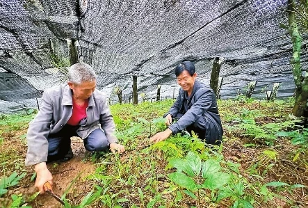 近年來,文山壯族苗族自治州在保障森林生態系統安全的前提下,大力發展林下中藥材種植。目前,全州林下經濟林地利用面積達150萬畝,產值超過10億元。圖為西疇縣西灑鎮把獨村村民在八角林下種植三七。(記者 張文峰 攝)