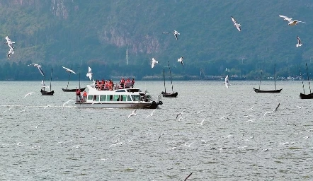 10月29日,來春城昆明越冬的紅嘴鷗聚集在滇池大壩草海水域覓食,吸引大批市民游客前來觀鷗喂鷗。目前,抵達昆明的紅嘴鷗主要集中在滇池大壩至龍門村沿線水域,數量超過5000只,進入11月,紅嘴鷗大部隊將會抵達昆明。(記者 楊崢)