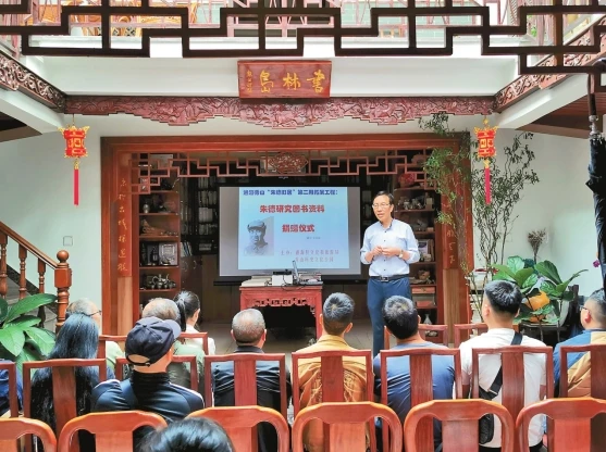 “我出生在通海縣六一村,后期大量的閱讀和查閱歷史文獻,讓我能用一種‘另類眼光’審視這塊與我血肉相連的土地,用一種文化感覺去觸摸這個鄉村……”“書林島——楊楊書院”主人楊楊娓娓道來,面對前來交流學習的六一社區23名黨員干部和職工,他講授了《六一村的歷史文化解讀》以及鄉村振興、文化先行的重要性。
