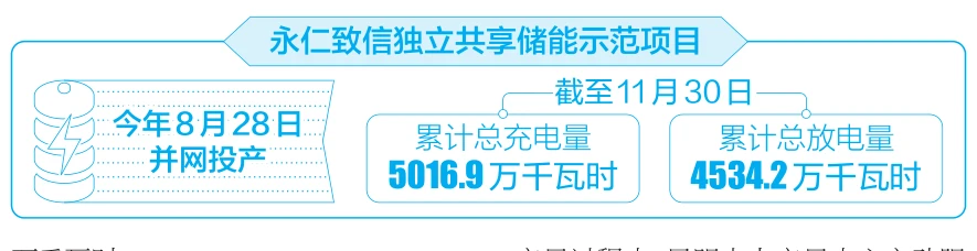 永仁致信300兆瓦/600兆瓦時獨立共享儲能示范項目是云南省首個建成并網投入運營的獨立共享儲能項目,配套179臺儲能電池艙,配建220千伏儲能升壓站1座,于今年8月28日并網投產,截至11月30日,該電站累計總充電量5016.9萬千瓦時,累計總放電量4534.2萬千瓦時。