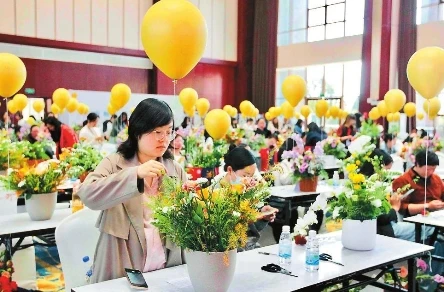 左圖:3月6日,昆明市舉辦市直機關、呈貢區女職工插花花藝大賽。女職工們用巧手插花,陶冶情操,共迎屬于自己的節日。見習記者 高吳雙 攝