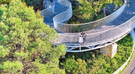 夏日初始,草木蔥蘢。在昆明金殿風景名勝區,白色棧道在森林中蜿蜒盤旋,吸引游人前來體驗綠色“海洋”世界。昆明市盤龍區森林面積51896.37公頃,草地面積2659.85公頃,濕地面積18.67公頃。今年4月,盤龍區入選云南省林業碳匯試點縣(市、區),將通過發展林業碳匯,持續培育森林后備資源,抓好碳匯試點項目建設和碳匯交易,助力協同推進降碳、減污、擴綠、增長,打造城市“綠色銀行”。(記者 高吳雙)