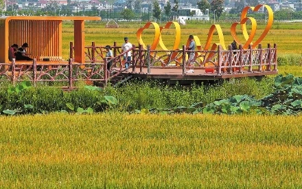 金秋時節,位于建水縣雙龍橋畔的西莊稻田公園1200畝水稻陸續進入成熟期,金黃的稻田和獨特的文創景致構成了一幅鄉村田園的美麗畫卷。稻田公園融匯田園文化、農耕文化、休閑文化,著力打造集生態農業、旅游觀光、休閑娛樂為一體的田園綜合體,助力鄉村振興。