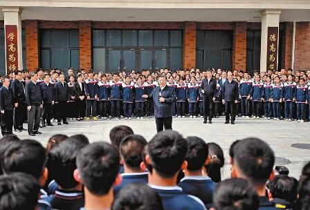 教學樓前廣場上,師生們紛紛圍攏過來,高聲向總書記問好。習近平親切地對大家說,我到西寧第一站就來看望老師和同學們。上海援建的這所中學,培養來自果洛牧區的各民族孩子,成效明顯,意義深遠。希望孩子們倍加珍惜這里的良好條件,心懷感恩、好好學習,德智體美勞全面發展,立志成為中國特色社會主義事業的接班人和建設者,努力為自己贏得人生出彩的機會。他祝孩子們學有所成、健康成長。