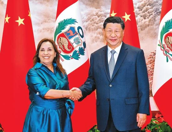 習近平指出,中國和秘魯都是文明古國,兩國友誼源遠流長,人民友好深入人心。秘魯是最早同新中國建交、最早同中國建立全面戰略伙伴關系的拉美國家之一,也是最早同中國簽署一攬子自由貿易協定的拉美國家。近年來,在雙方共同努力下,中秘各領域合作取得豐碩成果,中國企業在秘魯重大合作項目為秘魯經濟發展、民生改善發揮了重要作用。中方高度重視發展中秘關系,愿同秘方夯實政治互信,深化務實合作,促進文明互鑒,加強多邊協作,推動中秘全面戰略伙伴關系不斷邁上新臺階。