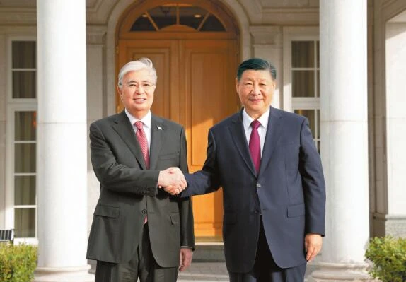 新華社阿斯塔納7月2日電 當地時間7月2日晚,國家主席習近平應邀同哈薩克斯坦總統托卡耶夫共進晚餐,在愉快溫馨的環境中就中哈關系和共同關心的問題進行了親切友好的交流。