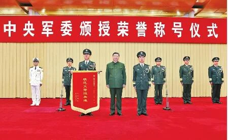 八一大樓儀式現場,部隊官兵和文職人員代表整齊列隊,氣氛莊重熱烈。下午3時30分許,18名禮兵正步入場,持槍佇立兩側,頒授儀式開始,全場高唱中華人民共和國國歌。中共中央政治局委員、中央軍委副主席張又俠宣讀習近平簽署的中央軍委授予榮譽稱號命令,中共中央政治局委員、中央軍委副主席何衛東主持儀式。