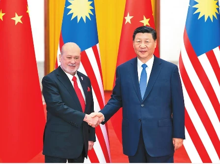 習近平指出,中國同馬來西亞隔海相望,兩國友誼傳承千年。1974年建交以來,中馬始終友好相處、守望相助,樹立了國與國相互成就、合作共贏的典范。今年是中馬建交50周年暨“中馬友好年”,是中馬關系承前啟后、繼往開來的重要年份。中國正在進一步全面深化改革、推進高水平對外開放,這將給中馬兩國合作帶來新動力、新機遇。中方愿同馬方傳承發揚優良傳統,做世代友好的親密鄰居、攜手發展的真誠伙伴、情同手足的知心朋友、共促和平的重要力量,在各自現代化發展征程中深化戰略合作,推動中馬命運共同體建設不斷邁上新臺階。