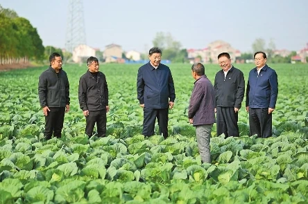 5日上午,習近平前往咸寧市嘉魚縣,首先到潘家灣鎮十里蔬菜長廊考察。深秋時節,這里仍然滿目青翠、生機勃勃。習近平走進田間,察看蔬菜長勢,詳細詢問蔬菜品種、種植技術、銷售等情況。他強調,農村天地廣闊,農業大有可為。發展現代農業,建設農業強國,必須依靠科技進步,讓科技為農業現代化插上騰飛的翅膀。他勉勵當地干部群眾走科技之路、質量之路、品牌之路,把蔬菜種植這個富民產業進一步做好,讓更多群眾增收致富。