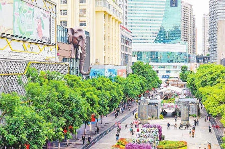 昆明南屏步行街“大象”創意外墻裝置亮相。 記者 胡妤雅 攝