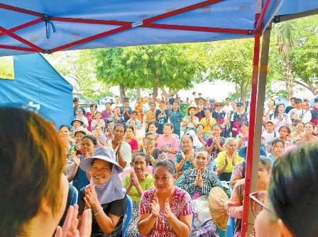 緬甸當(dāng)?shù)貢r(shí)間4月26日,烈日高懸,地面溫度很高。在曼德勒一處臨時(shí)安置點(diǎn)的空地上,百余名緬甸受災(zāi)民眾圍坐在臨時(shí)搭建的帳篷外,認(rèn)真聆聽(tīng)來(lái)自中國(guó)政府援緬衛(wèi)生防疫隊(duì)心理專家的引導(dǎo)。