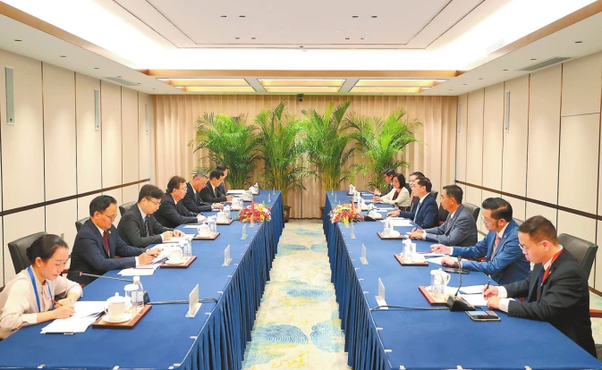 8月15日,省委書記王寧在安寧市會見來滇出席瀾滄江—湄公河合作第十次外長會的越南副總理兼外長裴青山。記者 周燦 攝
