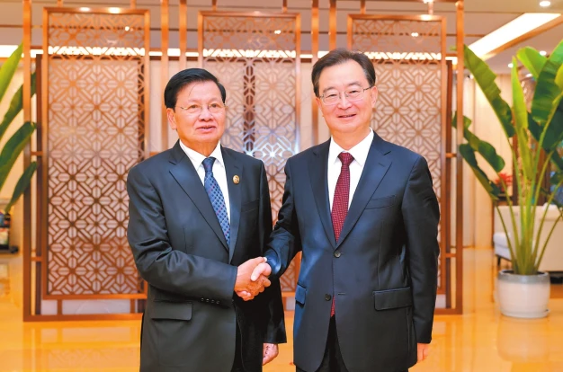 9月4日,王寧在西雙版納州景洪市會(huì)見(jiàn)老撾人民革命黨中央總書(shū)記、國(guó)家主席通倫。記者 周燦 攝
