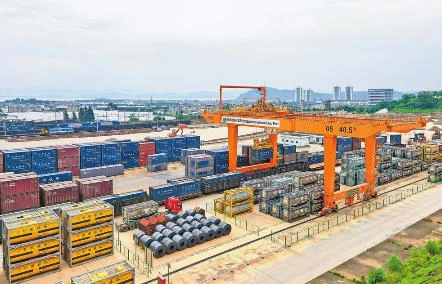 龍門吊來回作業(yè),列車鳴笛啟程,云南騰俊國際陸港一派繁忙景象。作為中老鐵路進(jìn)入昆明的第一站,云南騰俊國際陸港鐵路專用線與公共場站無縫銜接,進(jìn)口的榴蓮、鐵礦石,出口的鋼材、百貨等裝卸更方便、運(yùn)輸更快捷。7月初首發(fā)的“鄭和號”多式聯(lián)運(yùn)班列,開辟了從云南直通印度洋的海公鐵多式聯(lián)運(yùn)全新航線,為促進(jìn)云南與南亞東南亞國家的物流運(yùn)輸、商貿(mào)流通再添活力。