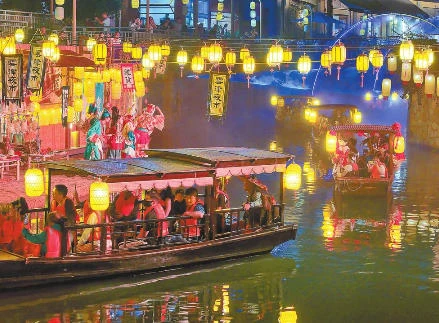 在滇池之畔的昆明融創(chuàng)文旅城,蔚藍(lán)的池水與絢爛的民族服飾交織,空飄熱氣球與咖啡市集同在……夜幕下,游客們手提燈籠,穿梭于云津夜市,與“古代商販”討價(jià)還價(jià),觀看傳統(tǒng)技藝表演,品嘗地道云南小吃。據(jù)了解,“云津夜市”情景演出是環(huán)滇池區(qū)域文旅聯(lián)動(dòng)的重要一環(huán),后海商業(yè)街區(qū)通過(guò)系列演藝活動(dòng),豐富了環(huán)滇池黃金岸線的夜游體驗(yàn)。