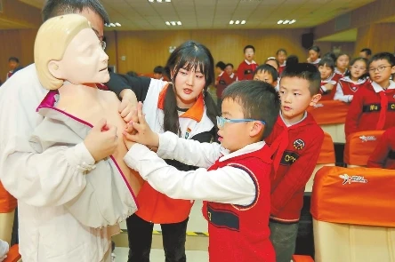 5月12日是第17個全國防災減災日,今年的主題是“人人講安全、個個會應急——排查身邊災害隱患”。在昆明市五華區武成小學教育集團人民路校區,同學們在大學生志愿者指導下進行心肺復蘇模擬練習,學習掌握突發情況下的應急救護知識,通過生命教育實踐活動提升學生的安全意識和應急救護能力。