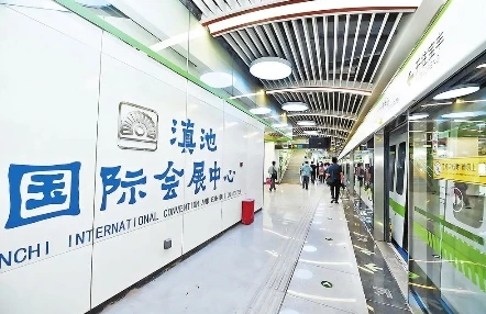 近日,昆明地鐵強化與公交、機場、鐵路、公安等多方協同聯動,加強防汛巡查,增配運力,在核心站點增加服務力量,確保南博會期間地鐵運輸穩定暢通。記者 龍舟 攝