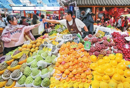 國慶中秋雙節(jié)臨近,我省節(jié)日市場紅紅火火、購銷兩旺。在昆明大觀篆新農(nóng)貿(mào)市場,節(jié)前采購的市民和游客絡(luò)繹不絕,時(shí)令水果、蔬菜肉食、海鮮水產(chǎn)、中秋大餅等商品琳瑯滿目,市場供應(yīng)充足,價(jià)格穩(wěn)定。(記者 楊崢 陳飛 攝
