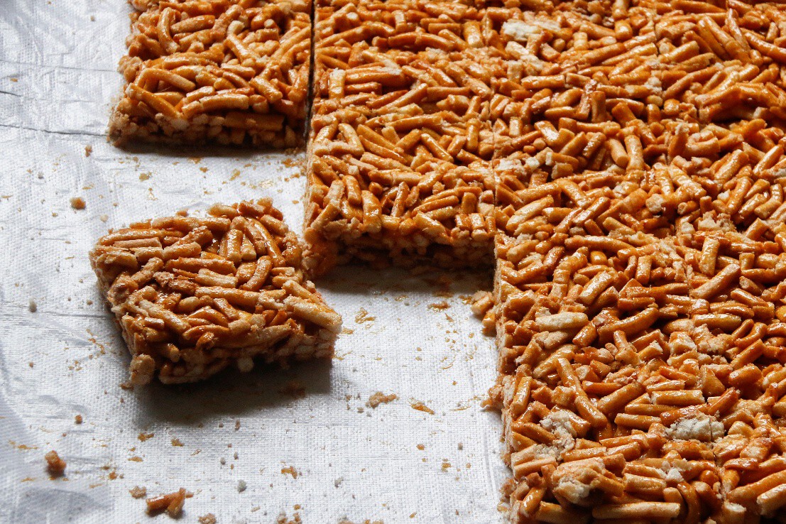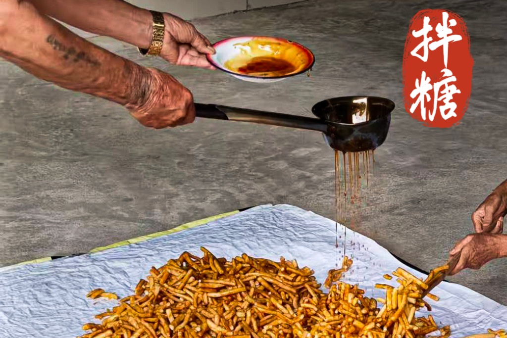 剪條、油炸、拌糖、壓實(shí)、切塊