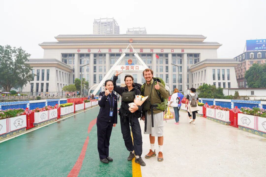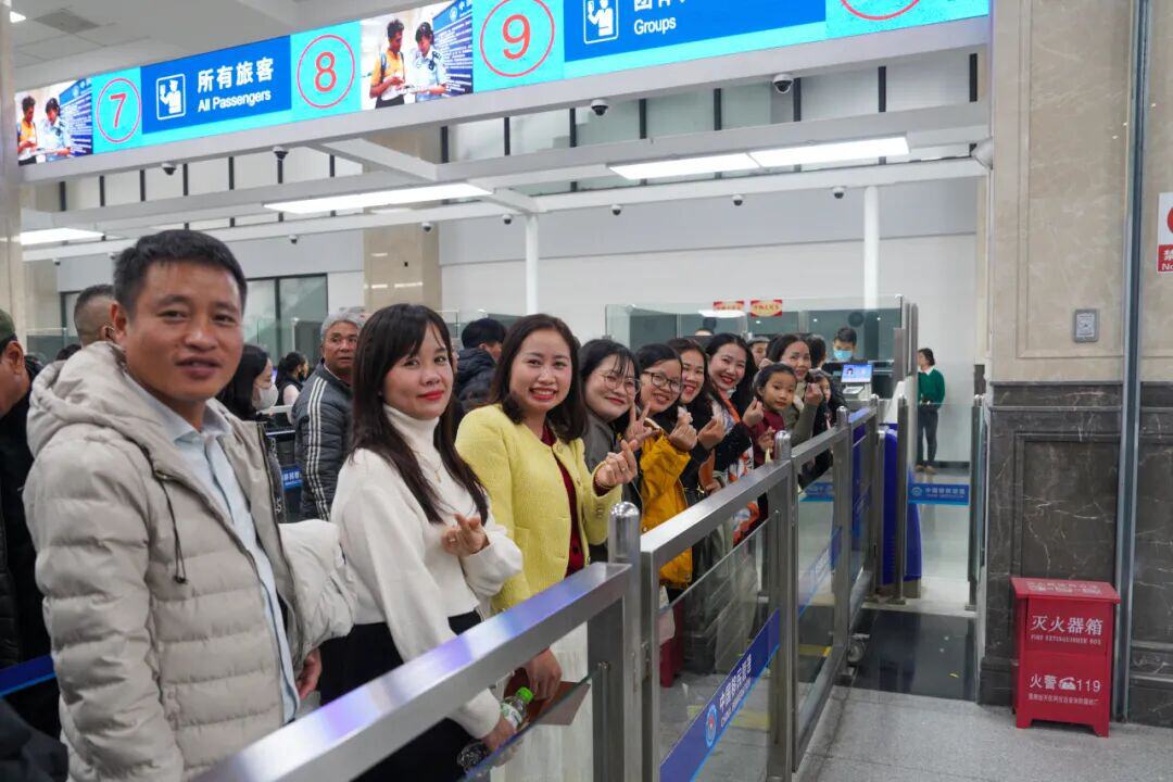 12月12日,河口邊檢站民警與河口口岸第600萬名旅客合影留念。(趙國驍 攝)