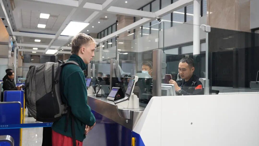 12月9日,河口邊檢站民警為旅客辦理邊檢查驗手續。(張航 攝)