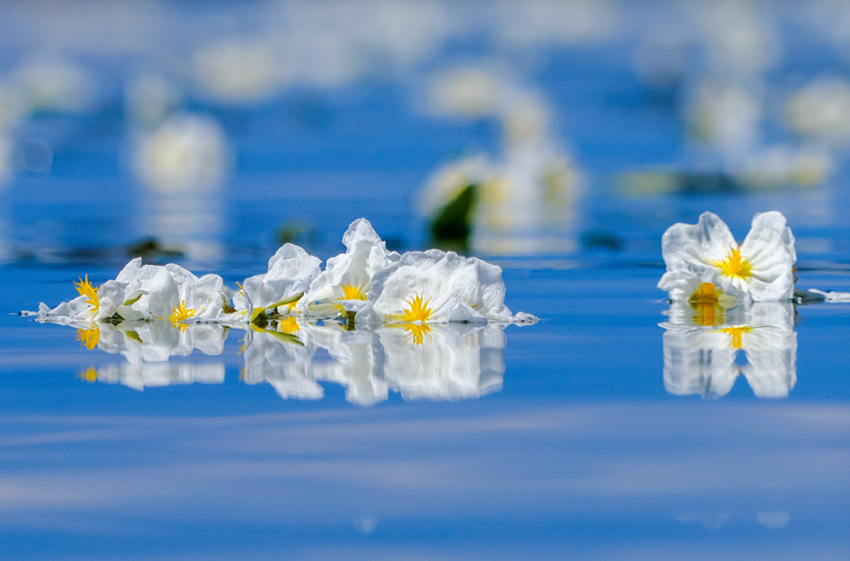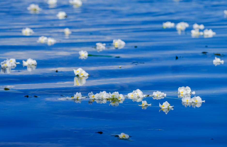 初冬,云南大理洱海碧波蕩漾,一片片潔白的小花浮在水面,宛如繁星落入湖中。