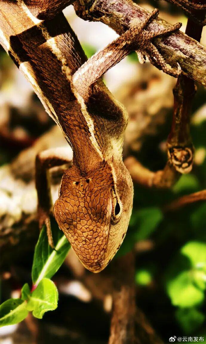 日前,攝影愛好者在保山市龍陵縣木城鄉發現一只貌似“迷你恐龍”的陸生爬行動物,經大理大學東喜瑪拉雅研究院助理研究員李延鵬鑒定,確定為爬行綱有鱗目鬣蜥科樹蜥屬爬行動物棕背樹蜥。