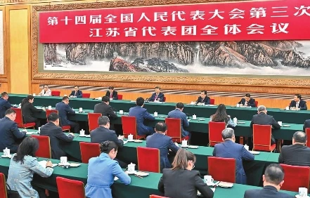 江蘇代表團審議認真,氣氛活躍。趙建軍、徐光輝、張俊杰、李肖娜、繆漢根、柯軍等6位代表分別就加快綠色低碳轉型發展、打造產業科技創新中心、推動轉化醫學建設、建設和美社區、推動傳統產業發展、保護傳承傳統戲曲等發言。