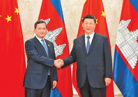 習(xí)近平指出,中柬友好久經(jīng)考驗(yàn),始終堅(jiān)如磐石,成為兩國(guó)人民共同的寶貴財(cái)富。面對(duì)國(guó)際風(fēng)云變幻,中柬作為鐵桿朋友,要胸懷全局、放眼長(zhǎng)遠(yuǎn),沿著兩國(guó)老一輩領(lǐng)導(dǎo)人開(kāi)辟的中柬友好之路堅(jiān)定不移走下去。雙方要緊密團(tuán)結(jié)、相互成就,增進(jìn)兩國(guó)人民福祉,為地區(qū)和平、穩(wěn)定、繁榮作出貢獻(xiàn)。