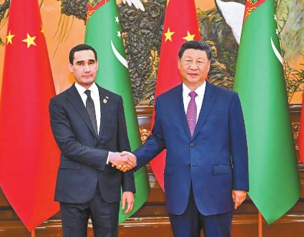 習近平指出,中國和土庫曼斯坦是相互信賴的好伙伴。兩國合作建立在相互尊重、互利共贏基礎上,能夠優勢互補。中方愿同土方深化合作交流,構建中土命運共同體。